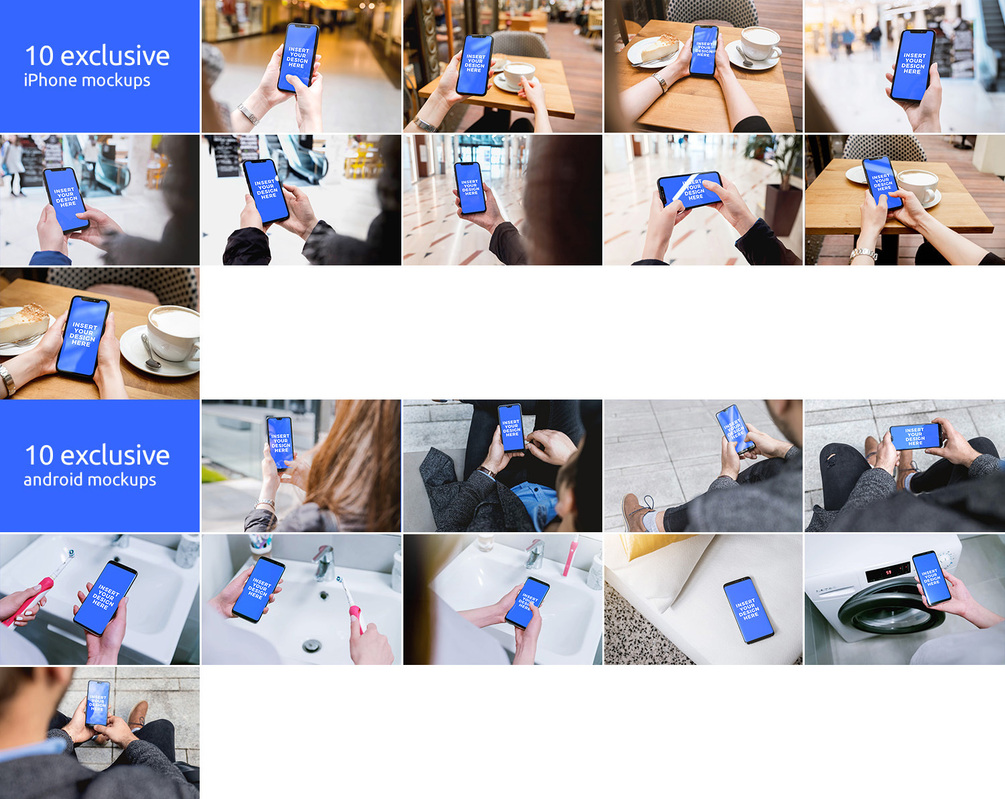 - Exclusive mobile mockups - 10 Android, 10 iPhone