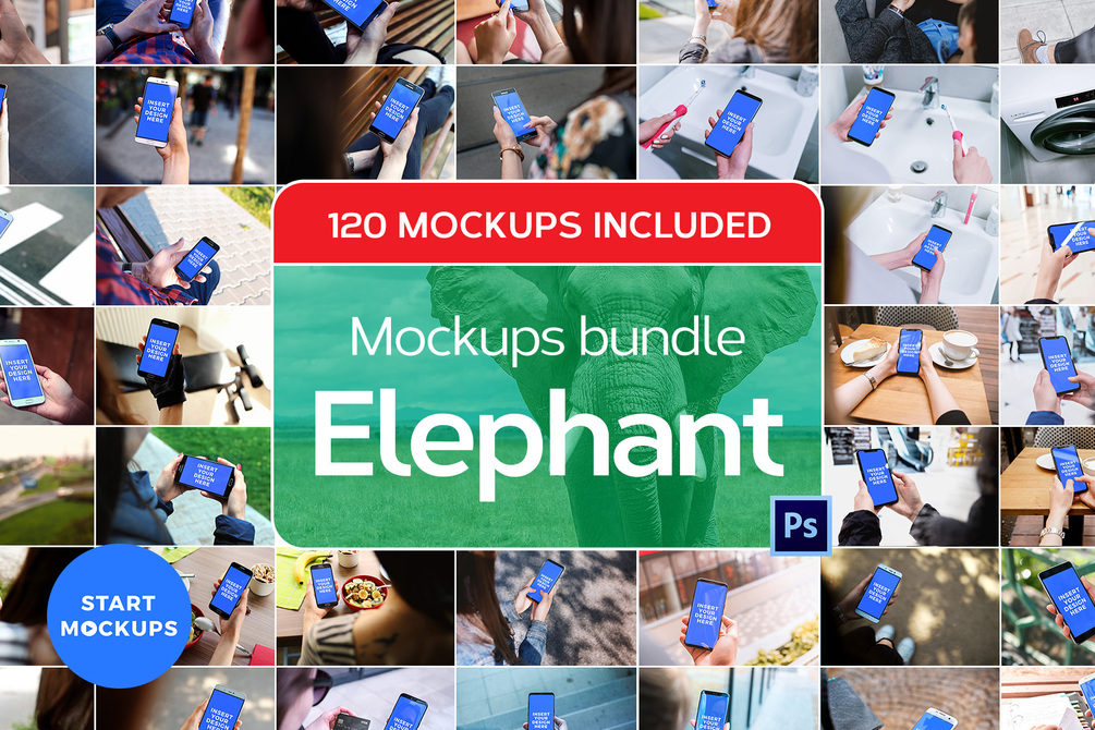 Mockups bundle Elephant with 120 mockups included